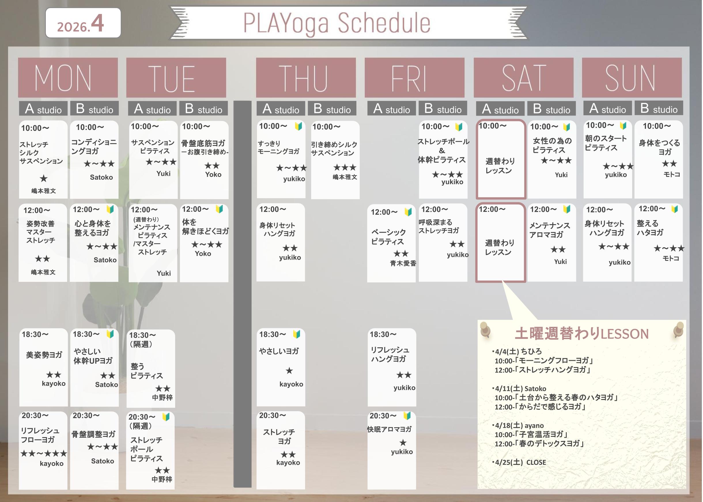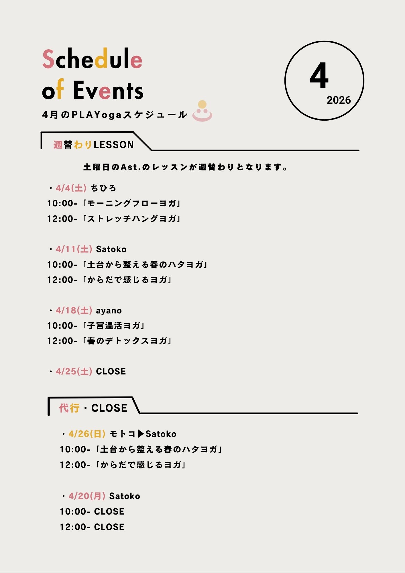 いつもプレイヨガのレッスンにご参加いただき、ありがとうございます。