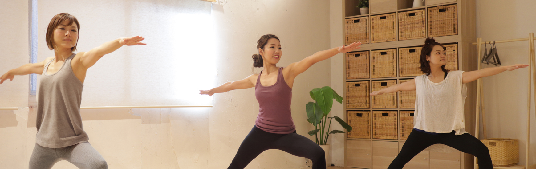 プレイヨガでは、初心者の方から安心してレッスンを受けて頂けるように、全て少人数制・ご予約制でのレッスンになります。